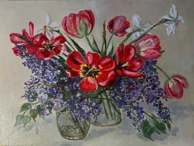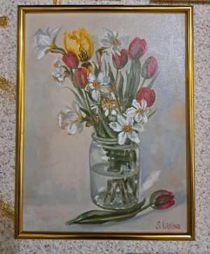 Моя авторская работа. Картина маслом Писала в живую этот букет 💐. Холст на картоне 30×40см