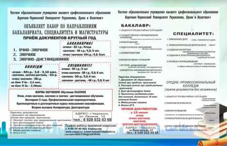 "Карачаево-Черкесский Университет Управления,Права и Политики" ведет прием документов круглый год на заочное,магистратуры...
