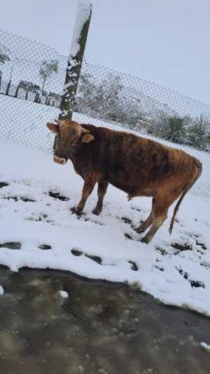 Бычок 8 месяцев,на привязи с 4 месяцев.В три месяца был отучен от молока,потом полтора месяца кормили кашей.